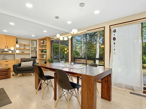 Gorgeous & highly desirable large corner unit offering beautiful wooded views from every window! This sun-filled home features an open floor plan, a dramatic wall of glass, & an amazing sleep-in loft with recessed lights & a study area in one of the bedrooms. Enjoy extensive updates inside and out, including a new roof (2025), fresh interior paint (2025), and repainted front and back porches (2025). Stylish recessed lighting throughout + new bsmtt lighting (2024) add a modern flair. The kitchen shines with a quartz island, resurfaced cabinets, tile backsplash, and new hood. The primary bath was fully renovated (2020), with additional baths beautifully updated as well. Additional highlights include new h/w flrs, a custom h/w staircase with sleek railing, and a tiled entryway. Upstairs, the bedroom features rebuilt closets, added linen storage, and a loft with sliding library stairs (2023).New water heater (2022) and A/C motor (2019). A move-in-readygem overlooking lush lawns and offerin