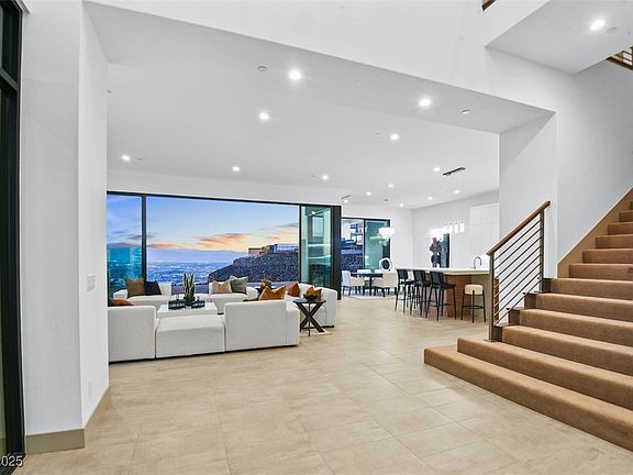Discover brand-new luxury in this 5,165 sq. ft. Sky Vu at MacDonald Highlands home with breathtaking Las Vegas Strip, city, and mountain views and over $200,000 in upgrades. The gourmet kitchen features Wolf and Sub-Zero appliances, quartz countertops, and bar seating at the island opening seamlessly to the great room and dining area. Pocket sliders create effortless indoor-outdoor living. The home includes four bedrooms with ensuite baths and custom walk-in closets. Take the elevator to the sky loft penthouse suite for an unmatched view of the Strip. The outdoor space is perfect for entertaining or relaxing, with a pool and spa, fire pits, and a BBQ area.The community enhances the lifestyle with golf, multiple dining options, a state-of-the-art fitness center, and pickleball and tennis courts. Don’t miss the opportunity to own a piece of Las Vegas luxury.
