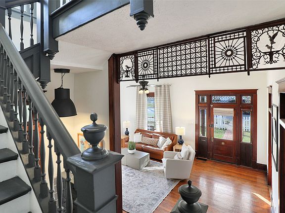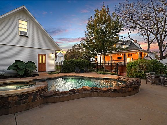 Step into the timeless charm of this storybook 1884 Victorian farmhouse, complete with a white picket fence and tastefully updated for modern living. A welcoming front porch with a classic porch swing invites you to slow down ~ perfect for reading a favorite book or enjoying an afternoon power nap. This exceptional property features a main house with 4 bedrooms and 3.5 baths, and includes two private accessory units, ideal for multigenerational living, guest accommodations, home offices, or rental income opportunities. Each guest suite includes its own kitchenette and full bath, providing comfort and flexibility for a variety of lifestyles. The inviting first-floor primary ensuite features a cozy fireplace, separate vanities, and a spacious walk-in shower. Throughout the home, original architectural details shine~longleaf pine floors, authentic transom windows, and intricate Victorian fretwork framing the charming staircase. With a total of five fireplaces, including ones in the kitchen, living room, and primary bedroom, warmth and character are found in every corner. The chef’s kitchen impresses with a 6-burner gas range, quartz countertops, an eat-in island, and French doors that open onto an expansive deck. Perfect for hosting gatherings, the outdoor living space overlooks the sparkling pool and spa and showcases an outdoor kitchen, creating an entertainer’s dream environment. A private backyard oasis features a greenhouse, garden area, and serene spaces for relaxation or recreation. Perfectly situated near McKinney’s Historic Downtown Square and just moments from Finch Park~ with its walking trails, pickleball courts, and playgrounds ~ this property blends historic character, modern comfort, and unbeatable convenience. A charming McKinney treasure, ready to welcome its next storybook chapter.