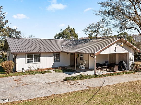 The outside features are an attached carport, concrete driveway, and a 44x24 workshop/storage with 3 roll up doors.
