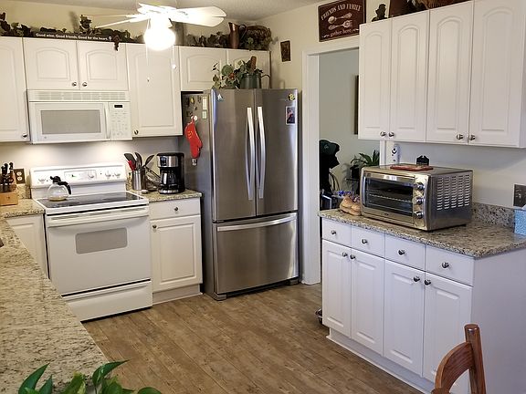 WELCOME HOME TO A RELAXING EVENING ON YOUR FRONT PORCH! GREAT FIND WITH 1.27 ACRES, AN ATTACHED TWO CAR GARAGE, AND A LARGE DETACHED GARAGE / WORKSHOP - PERFECT FOR BOAT STORAGE! This beauty features 3 bedrooms / 2 full baths, a huge great room with cathedral ceiling, an eat-in kitchen with granite counter tops, a split bedroom floor plan, and a new 20x12 deck. Some of the upgrades are: 2020 - new roof, master bath totally upgraded (paint, mirrors, porcelain tile flooring and granite counter tops plus faucets), new paint in 2nd bedroom / office; 2019 - lawn aerated and seeded; new front storm door; custom blinds in kitchen, breakfast area, and guest bedroom; some new windows; luxury vinyl plank flooring installed; granite counter tops, sink, faucet, and disposal in kitchen; 2018 - fresh landscaping with four beautiful rose bushes with border and mulch; guest bath totally updated; 2017 - replaced patio door and dishwasher. THIS IS HOME!