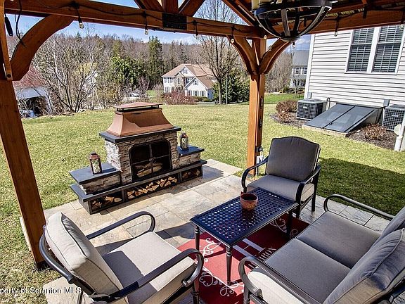 Back on the market due to buyer default. Step into luxury living in the highly sought-after Harmony Hills community, where an open floor plan and TONS of natural light create an inviting and airy atmosphere. This 5-bedroom, 3.5-bath home sits on a premium corner lot and is just 15 minutes from Scranton, offering the perfect blend of privacy and convenience with easy access to shopping and dining. Designed for both comfort and functionality, this home features two spacious suites for added flexibility. The primary suite is a true retreat, boasting two oversized walk-in closets, a spa-like ensuite with a soaking jacuzzi tub, a stand-up shower, and dual vanities. The second suite includes its own private bath and generous walk-in closet, perfect for guests or extended family. Every bedroom in the home includes a walk-in closet, ensuring plenty of storage throughout. At the heart of the home is the gourmet kitchen, outfitted with granite countertops, a massive center island, double ovens, a propane cooktop, stainless steel appliances, and a walk-in pantry. Flowing effortlessly into the vaulted living room, this space is bathed in natural light, enhanced by a propane fireplace and power shades for the high-set windows. The formal dining room, family room, and dedicated home office provide even more versatility for everyday living and entertaining. A spacious laundry room adds to the home's convenience. Downstairs, the finished movie theater room offers the perfect spot for entertainment but can easily serve as a fifth bedroom or flex space. A large unfinished basement area provides endless potential for storage, a home gym, or future expansion. Outdoor living is just as impressive, featuring a Trex deck with a retractable power awning, a gazebo with a built-in fireplace, and a storage shed. A two-car garage and full-house attic add even more storage options.