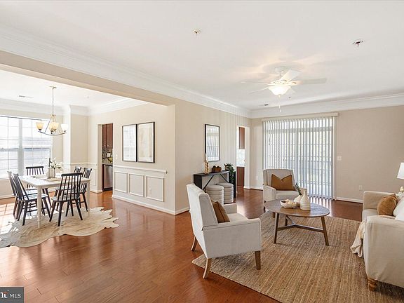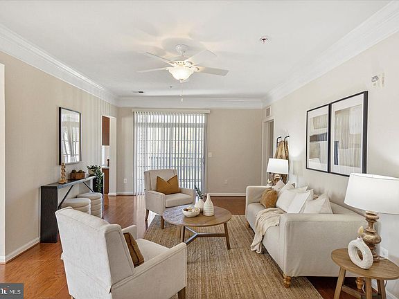 Step inside to an inviting open layout filled with natural light, gleaming vinyl floors, and a freshly painted neutral palette. The gourmet kitchen boasts granite countertops, stainless steel appliances, and 42" cabinetry, while elegant crown molding enhances the dining and living areas. Sliding glass doors open to a private balcony, offering the perfect spot to unwind outdoors.n The spacious primary suite includes a cozy sitting area, walk-in closet, secondary closet, and an ensuite bath with a dual-sink vanity and walk-in shower enclosed by sliding glass doors. The second bedroom and full bath with a tub-shower combo are thoughtfully positioned on the opposite side of the unit for added privacy. A den off the foyer provides flexible space for a home office, library, or guest retreat. Additional highlights include a dedicated laundry room, ample parking, and attached garage. Enjoy amazing community amenities such as a clubhouse with a fitness center, outdoor pool, community garden, dog park, scenic walking paths, social events, and more. Conveniently located just off I-795, this home offers easy access to shopping, dining, and everything you need.