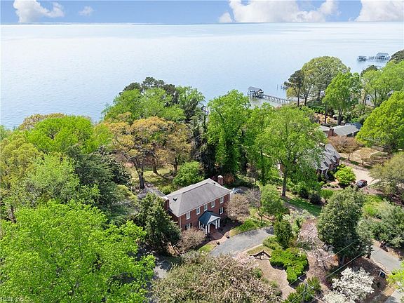 Welcome to Warwick Hall, a prominent James River estate on just under 2 acres of waterfront sophistication. This classic Georgian greets you with stately columns, custom insignias and sweeping James River views in almost every room. Ornamental ceiling detail and exquisite carpentry underscore its timeless elegance. Built to entertain, a chef’s kitchen includes a masonry fireplace and French doors spilling out to a patio, and the oversized living & dining areas offer something for every occasion. The 1st floor primary suite offers generous river views and a spa-like retreat. The staircase features custom millwork leading to more bedrooms with river views and a primary suite with dual closets, grand fireplace, & abundant natural light. Downstairs, a full basement has river views, masonry fireplace, wet bar & more! Outdoors you’ll see Warwick Hall offers an elevated experience via stunning grounds plus an oversized pool and poolhouse set at the edge of the James on 200+ feet of shoreline!
