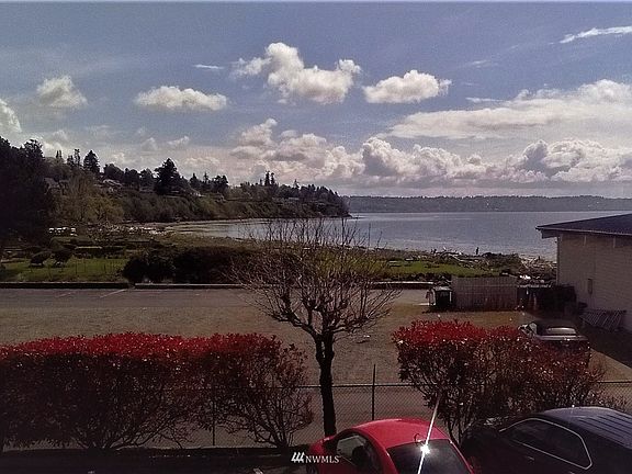 Located on the southwest corner of the building this is the largest unit in complex. Not only does this have 1700 sq ft and two private bedrooms (master has a solarium) but you also have a large deck area (316 sq ft) and lanai off dining room (60 sq ft). A Beautiful view of the Puget Sound towards Tacoma. Central courtyard with swimming pool, hot tub, BBQ area and gazebo all adjacent to lush plantings and waterfalls. Walk to the marina and waterfront park. Close to everything, 30 minutes to Seattle or Tacoma and only 10 minutes to the airport.
