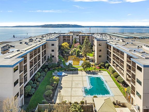 Resort-style, waterfront living in this gated community! The perfect place to call home, this beautiful, METICULOUSLY REMODELED condo is light, bright & move-in ready. 2 Bed/1.75 Bath unit w/mountain & sound views from TWO decks! Brand NEW kitchen w/stainless & Quartz, coffee nook, fireplace, spacious Primary w/2 closets, new flooring, & much more! Don't miss the lush courtyard w/serene gardens, water features, in-ground swimming pool, hot tub, & covered BBQ area. HUGE storage space & secure parking, plus plenty of visitor parking. Easy elevator access. Located next to Des Moines Marina, Farmer's Market, beach, parks, restaurants & public transit. Great opportunity to own and live along the Des Moines waterfront! *Virtually staged.