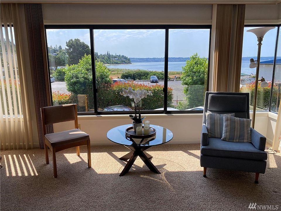 Kick back & relax on one of 2 decks overlooking beautiful Puget Sound. Enjoy stunning sunsets, in-ground swimming pool, hot-tub, BBQ area, lush gardens & features. Nicely updated kitchen & baths w/granite counters & beautiful cabinets. Great location - walking distance to Des Moines Marina, restaurants, parks, farmer's market & community events. Easy access to downtown Seattle, Tacoma & airport. Featuring gated entrance, lobby, elevators & huge storage unit. This is a must see condo!