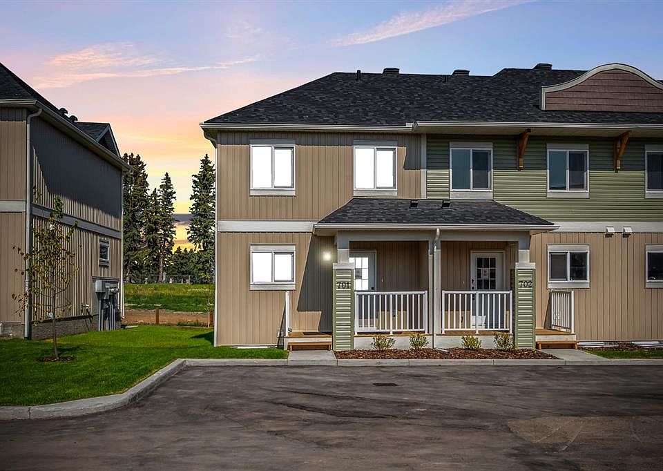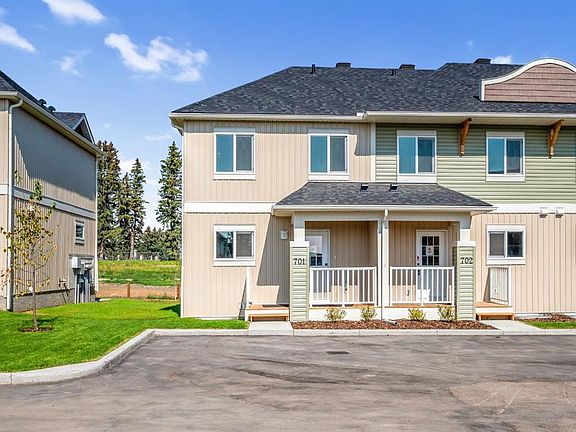 Welcome to 601 Clover Road – a newly built, fully finished END UNIT townhome that perfectly blends modern design, quality craftsmanship, and thoughtful functionality. Offering over 1575 sq ft of fully developed living space, this stunning two-storey features 4 bedrooms and 3.5 bathrooms, making it ideal for young professionals, investors or families seeking extra space and comfort. Step inside and you’ll be greeted by 9-foot ceilings, a bright and open layout, and stylish finishes throughout. The main floor features LVP flooring, numerous LED pot lights, and a beautiful kitchen with quartz countertops, high-gloss cabinetry, subway tile backsplash, and Whirlpool stainless steel appliances. The under mount sink with a pull-spray faucet and a convenient water line to the fridge add both elegance and practicality. Upstairs, you’ll find a spacious primary suite complete with its own 3 pc en suite and walk in closet, 2 additional bedrooms, a main 4-piece bathroom, and stacked laundry room for added convenience. All bathrooms feature quartz counters, under mount sinks, ceramic tile floors and walls, and comfort-height toilets. The fully finished basement expands your living space with a cozy recreation area, a custom dry bar with a mini fridge, an additional bedroom, and a full bathroom—perfect for guests, entertaining, or a home office setup. Additional highlights include a high-efficiency furnace, HRV system and 50-gallon hot water tank. Outside, the home showcases Smartboard siding, and a decorative fiberglass front entry door. Large private concrete patio equipped with a gas line rough-in for easy summer BBQs This home also includes two assigned parking stalls, and a low-maintenance lifestyle with monthly condo fees of $290.19. This move-in-ready home combines modern design, energy efficiency, and functional living in a peaceful Carstairs community — the perfect place to call home.