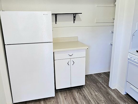 NEWLY REMODELED Spacious upstairs studio apartment in a very quiet complex. Remodeled kitchenette, Sliding glass door opens to a private covered patio overlooking scenic pine trees and a large walk-in personal storage room with a washer hook-up! Assigned covered parking, small fitness center and an outdoor seasonal swimming pool.