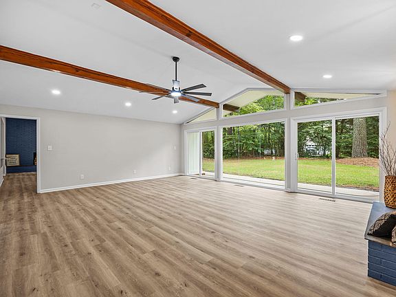 Renovated ranch-style beauty just 2 minutes from the heart of Downtown Wendell! This 3 bedroom, 2.5 bathroom home blends modern updates with cozy charm. The stunning living room features vaulted ceilings with exposed wood beams, a cozy fireplace, and abundant natural light. The completely redone kitchen boasts new cabinetry, granite countertops, and stainless steel appliances. Freshly painted throughout with new flooring in every room. All bathrooms have been stylishly updated with new vanities, light fixtures, tile, and showers. A brand new roof adds peace of mind. Step outside to a private backyard with a spacious patio—perfect for relaxing or entertaining. The two-car garage includes an extended workspace ideal for storage or projects. A must-see!
