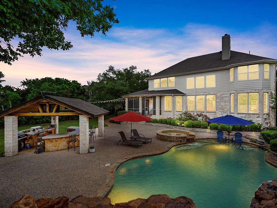 Experience refined Hill Country living in this beautifully renovated Overlook Estates masterpiece. Set on a landscaped 0.67-acre lot, this five-bedroom, four-and-a-half-bath home showcases over $300,000 in upgrades, blending modern luxury, thoughtful design, and energy innovation. The fully reimagined chef’s kitchen stuns with Dacor appliances, a 60-inch built-in fridge and freezer, dual fuel range, custom pantry, and marble countertops. New flooring throughout the main level complements soaring 20-foot ceilings, expansive windows, and custom-crafted railings. The spa-like primary suite features a five-piece bath with a 30-square-foot rain shower, soaking tub, and a custom walk-in closet. Outdoors, mature landscaping frames a resort-style pool with waterfalls, slide, grotto, and an outdoor kitchen perfect for entertaining. Enjoy true energy independence with a fully automated Solar System, full-home battery backup, and EV charger. A dedicated golf simulator room, a three-car garage, and a location within the acclaimed Leander ISD complete this exceptional offering. 601 Scenic Path is more than a home — it’s a lifestyle. Schedule your private showing today.