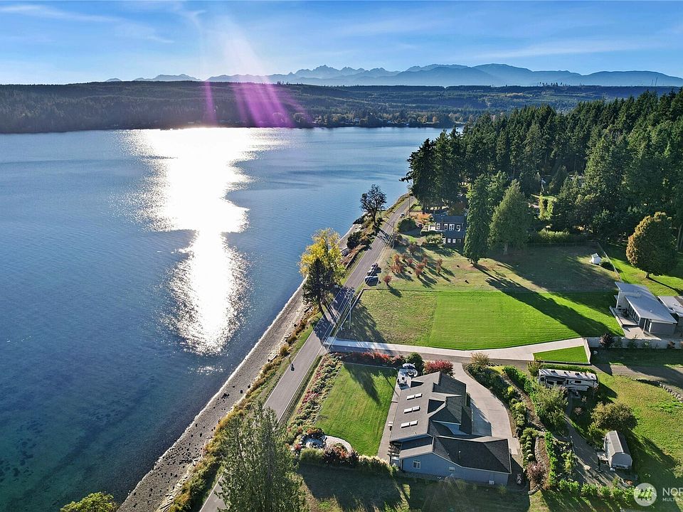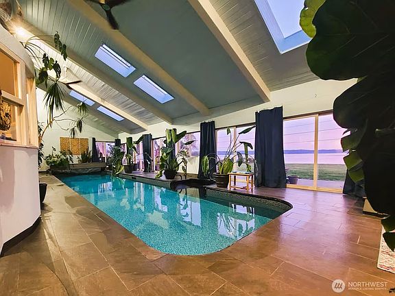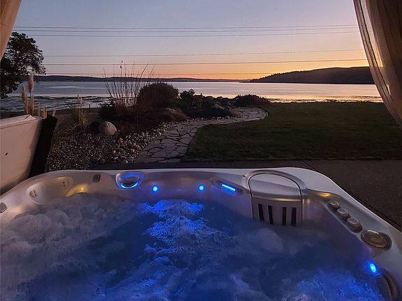 Experience waterfront serenity and timeless elegance on over an acre of property professionally landscaped for privacy, with gorgeous Hood Canal and Olympic Mountain views. Fully remodeled in 2017 (new roof in 2019) this 3-bed, 2-bath home spans nearly 3,600sqft with open-concept living, radiant heated floors, and a stunning indoor heated saltwater pool. Enjoy 150+ft of deeded beachfront for fishing, crabbing, or kayaking, then unwind by the hot tub or firepit beneath endless sunsets and starry skies. A public boat launch just 1/2 mile away completes the coastal lifestyle. Assumable VA loan @ 2.25% for qualified buyers, and a proven short-term rental success (ask agent for all details) —a rare blend of beauty, comfort, and opportunity!