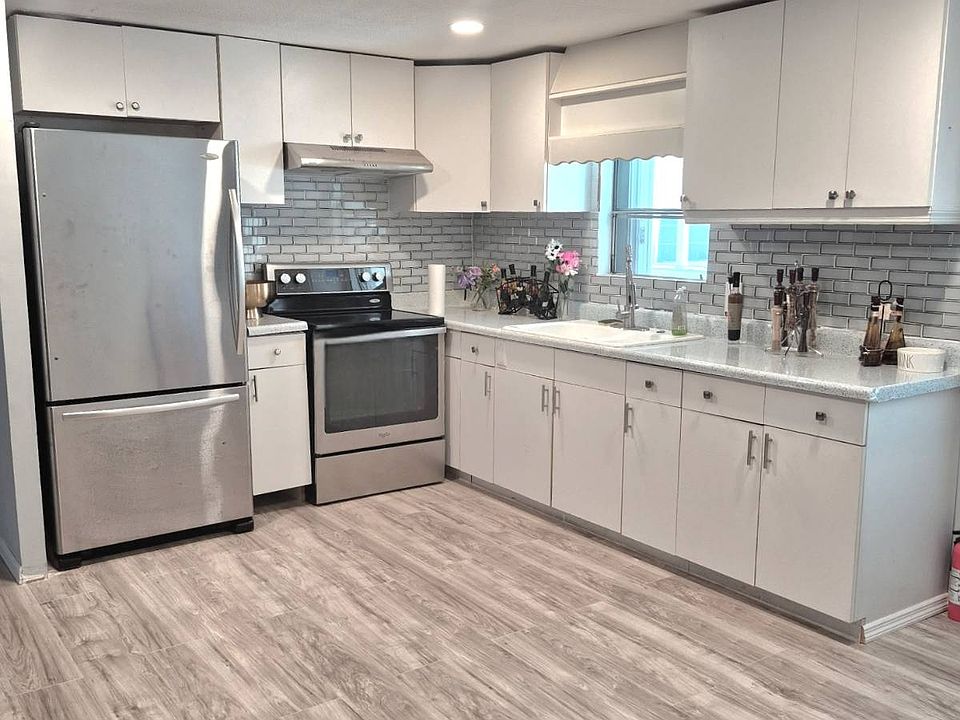 - Included: Refrigerator, Oven, Stainless Steel Appliances
