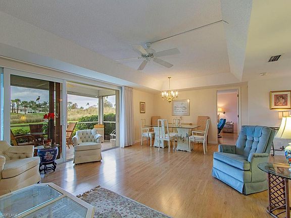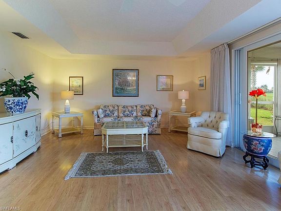 C.17084 Clean, 1st floor end unit overlooking lake and 18th Fairway on the Pines golf course.Naples style sunsets from your lanai ! Light and bright. High impact glass doors and windows w/screens. Pergo flooring through main living areas. Resort style amenities including Clubhouse, hard and grass tennis courts, 9 pools, bocce, shuffle board, Pickleball courts,Pro-Shop and 19th Hole restaurant. 3 miles to 10 miles of Gulf beaches and Old Naples. Private Country Club membership with 2 newly reconstructed 18-hole bundled golf courses. Location! Location,! Location!
