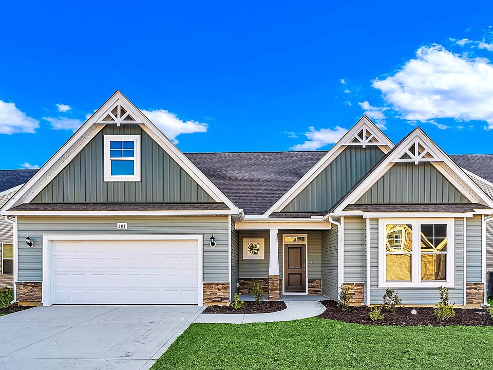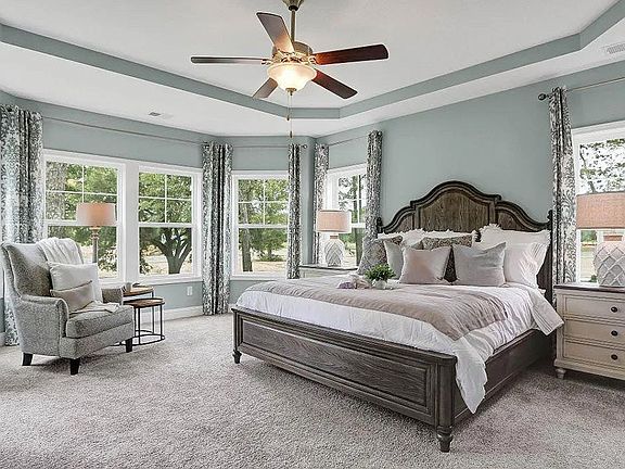 This Wrightsville 2 story boast 3 bedrooms, 3 full baths, a lower level study and an upstairs bonus room. Structural features added to this home include: Bay window in the Casual dining and Owner's suite, French doors on the study. A tiled shower in the owner's suite and a box bay window in bedroom 2. This home comes with a covered front and rear porch, 2 car garage complete with garage door opener and remotes. 3 sides sodded landscaping package with irrigation. Gutters are on the home as well as 30 year architectural shingles. Our design team has also added stone on the front of the home as an accent. 5 1/4" Laminate flooring in the living area. 12X24 tile is in the baths and laundry room. Upgraded cabinetry with high end hardware and a backsplash are featured in the kitchen. Carpet is in the bedrooms and study and bonus room. Quartz counter tops are in the kitchen and baths with upgraded lighting and plumbing fixtures. Too many features to list! Call for a full list of luxury options. Estimated completion April 2024. Fantastic location with easy access to 14 golf courses within a 7 mile radius and close to both North and South Carolina beaches, restaurants and shopping! Photos are representative of the Wrightsville home plan and not of actual home.