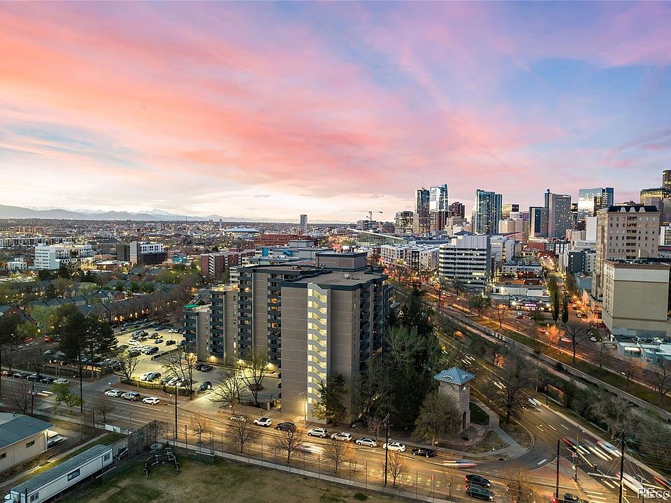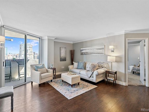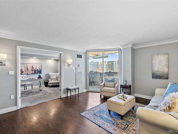 Welcome to your urban oasis where modern living meets the vibrant energy of Denver & offers convenience, premium amenities combined w/ resort like living. Stunning city views, easy access to Cherry Creek Trail, blocks to the Sante Fe Arts District, museums, acclaimed dining & cultural hotspots. Located on the 10th floor, featuring exclusive access via elevator with private code. The Parkway building secured entry & exclusive access to premium amenities, 9th floor hot tub, renovated lobby, business center & its own private gym. This resort-like community also has inclusive access to the newly renovated clubhouse next door at The Lincoln. Featuring additional state of the art fitness center, movie theatre, swimming pool & dog park. As you enter this unit, you'll be welcomed by the well appointed kitchen featuring granite counters, ample cabinet & counter space, stainless steel appliances, updated laminate flooring & eat at bar. Newer paint, carpet, custom crown molding, updated lighting throughout (lights on dimmers/connect to your phone)! The family room boasts natural light & new sconces, is open concept to the kitchen & makes a great entertaining space. Relax in the family room & look out to your private balcony that features captivating city views with heat lamps for added comfort. The primary suite has newer carpet & a spacious walk in closet with custom built ins & its own private ensuite bathroom w/ beautiful new shower tile, shower head, a soaking tub & granite slab counters. The guest bedroom, currently used as an office, boasts French doors, a closet w/ built-ins, newer carpet, sconces & access to the guest bathroom. The guest bathroom features slab granite counters, new tile shower surround tub/shower combo. The hallway boasts is a pantry/linen closet. In-unit laundry area w/ stackable washer & dryer! Rare opportunity to have 2 garage spaces (gated entry), storage locker & bike storage. Here's your chance to make this community your home sweet home.