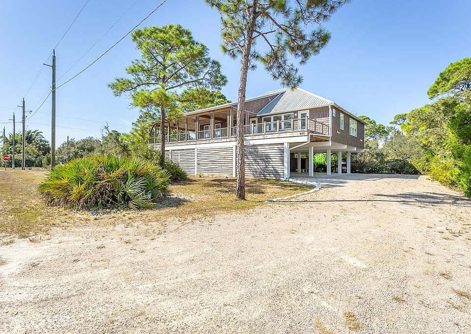 Prime Corner lot with Direct Beach Access, this well appointed custom coastal home offers an open living, dining and kitchen area with ceramic tile floors, half bath & utility room. The kitchen features custom maple Quaker-style cabinets, granite countertops, gas stove, refrigerator and wine rack. The spacious master suite includes double vanities, tile floors, oversized walk-in shower with dual showerheads & a large walk-in closet. Two guest bedrooms share a full bath and each has access to a private deck. Expansive covered & open decks provide ideal outdoor living spaces. Additional features include a cargo lift, ample ground level storage, outdoor shower & fish cleaning station, Rinnai hot water heater. Easy golf cart, biking, or walking to the local restaurants, shopping and Lighthouse Park.