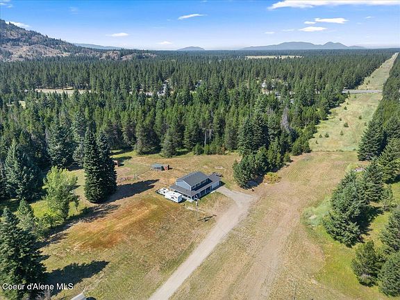Welcome to this stunning 10-acre property in Rathdrum, offering the perfect blend of privacy, tranquility, and endless recreational opportunities! This newly built two-story home boasts a spacious wrap-around front and back porch, ideal for enjoying the surrounding views. Inside, you'll find beautiful hickory cabinets, stainless steel appliances, laminate flooring, central air, fresh paint, white painted trim, and durable fiber cement siding.