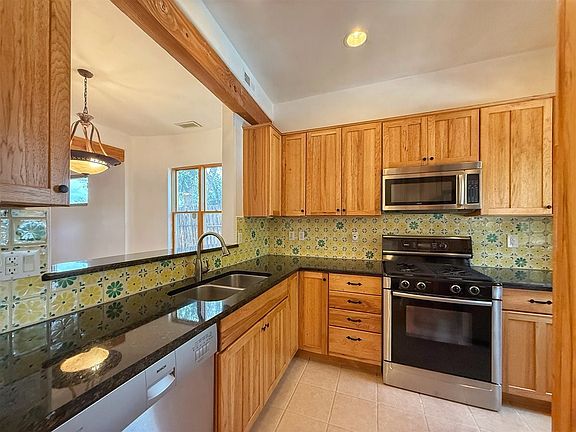 Details like tall ceilings, vigas, Pella windows, and stainless appliances add to the Santa Fe charm, while the community offers extras like a clubhouse, fitness room, and seasonal pool. Plus, you’re surrounded by lush landscaping and open grassy spaces.