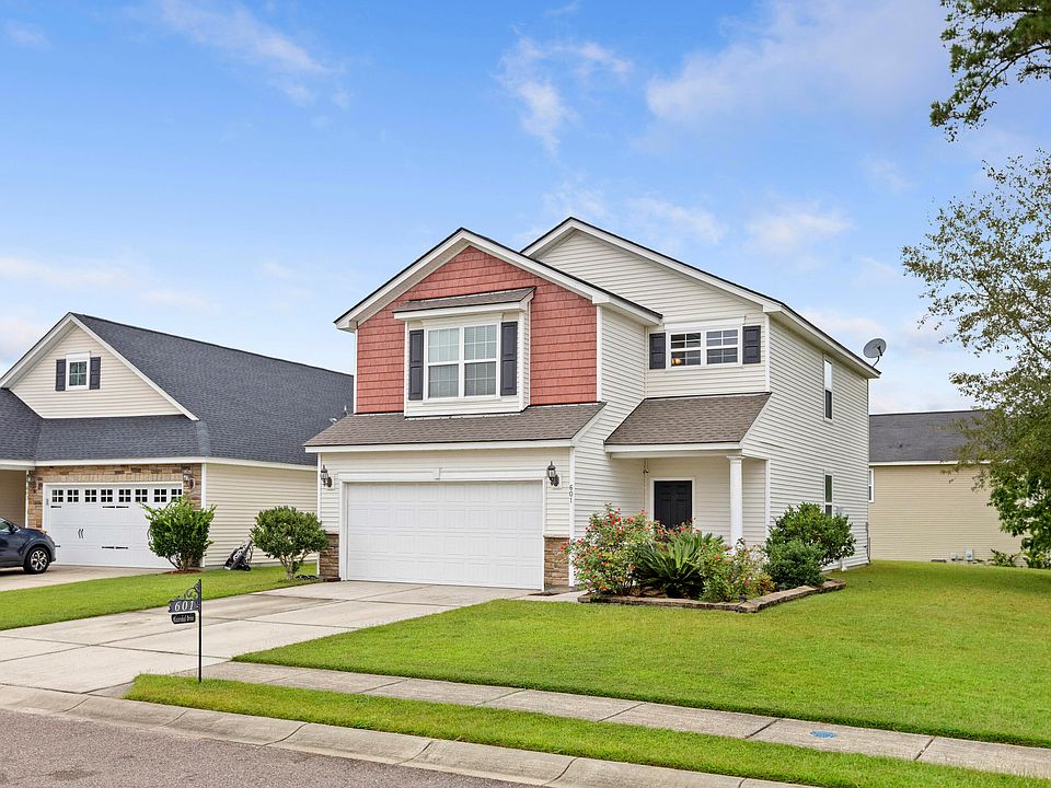 Discover this beautiful two-story home perfectly situated on a desirable corner lot in the community of Liberty Hall Plantation. Boasting 2,048 square feet of well-designed living space, this residence offers a fantastic layout with 4 bedrooms and 2.5 bathrooms. New roof in 2025. The main level features a dedicated Guest Bedroom adjacent to a Half Bathroom, ideal for visiting family, an in-law suite, or a private home office. The kitchen showcases stunning dark granite countertops, an elegant tile backsplash, plenty of cabinets, and a pantry. Modern stainless steel appliances, including a dishwasher and refrigerator, complete this stylish and functional space. The Second Floor Sanctuary includes the peaceful Primary Bedroom Suite and two additional bedrooms and a large laundry room.There is also a versatile loft area which serves as additional multi-purpose space whether as an entertainment media room, a children's playroom, a hobby area, or a home office area. This home combines comfort, style, and functional living, making it an ideal choice for any family. Don't miss the opportunity to make 601 Watershed Drive your new address!
