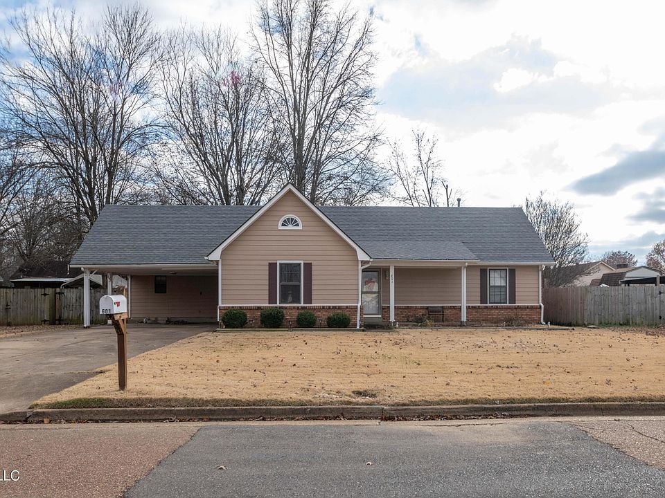 Home is located in Greenbrook! 1 year home warranty included!  Roof less than 1 yr old. It has 3 bedrooms 2 bathrooms with an open and split bedroom floorplan. The eat in kitchen and hall bath have already been updated and there are new laminate floors throughout. Outside has a 2 car carport, a large fenced back yard, and a storage building.