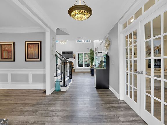 Welcome to 6010 Anchorage Quay (with deeded slip on private dock) - Lake Lanier Luxury Living at its Finest! Nestled in a quiet 10-home enclave within the prestigious gated community of St. Michaels Bay, this gorgeous 6-bedroom, 4.5-bath estate home offers the perfect blend of elegance, comfort, and lake life. This home has been extensively renovated over the past few years including updates to all flooring, bathrooms, exterior deck, patio, and back yard. With access to a private 10 slip boat dock, this property has one of the 10 slips that is deeded to the property! This is your opportunity to enjoy Lake Lanier living within a short walk or golf cart ride away to your own slip. Step inside the inviting rocking chair front porch and into the elegant foyer, where French doors open to a private den/office with custom built-in bookcases. A separate dining room with a bay window, crown molding, and wainscoting sets the stage for memorable gatherings. The heart of the home is the two-story family room, featuring a wall of windows that floods the space with natural light and a stacked-stone fireplace that adds warmth and charm. The gourmet kitchen is a chef's dream with a massive granite island with wrap-around seating, double wall ovens, gas cooktop, walk-in pantry, coffee bar, and a casual breakfast room overlooking the lush backyard. A main-level guest suite with a private bath offers convenience and comfort, while a mudroom with ample storage keeps everything organized. Upstairs, an open balcony overlooks the great room and leads to an oversized loft/living area. The luxurious primary suite is a true retreat, featuring a tray ceiling, sitting area, and a fully remodeled spa bath with vaulted ceilings, a frameless tile shower, separate soaking tub, dual granite vanities, one oversized walk-in closet and a separate custom built deluxe closet/suite with a center island. Three additional bedrooms complete the upper level with two sharing an updated Jack-and-Jill bathroom. The laundry room is conveniently located upstairs and includes a sink and additional cabinetry. The fourth level is perfect for a movie/gaming room or whatever your heart desires. This level comes with a half bath. The fully finished basement provides exceptional entertaining space with a granite wet bar (complete with wrap-around seating and wine fridge), recreation room, exercise room, guest room, full bath, and additional living area. Step outside to your brand new covered back deck and covered patio overlooking the beautifully landscaped backyard, complete with flowering shrubs, landscape lighting, stepping stones, perimeter hedges, and a fire pit-all backing up to 10+ acres of protected Army Corps of Engineers land for unmatched privacy and direct access to Lake Lanier. Additional features include a three-car garage with charging station and extra parking pad, four HVAC units (three replaced within the last two years), whole-house water filtration system, and basement dehumidifier connected to the HVAC system. Located in the East Forsyth school district, St. Michaels Bay offers luxury amenities including tennis and pickleball courts, a clubhouse, resort-style pool, playground, nature trails, and a community dock for residents. Schedule your private tour today!