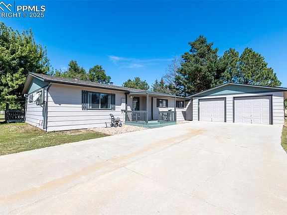 Welcome home to almost 5 acres in rural Peyton and your homestead-ready lifestyle. This property doesn't require any Propane. The entire house runs off of electricity. There are solar panels that provide supplemental hot water and heat. The fully independent RV pad with it's own septic tank, water and electric service is an income producing opportunity. Rent it out to RV vacationers or park an RV on it for a great short term rental. The shop provides another income producing opportunity as well. It is also a great feature for the hobby enthusiast. This property is perfect if you want some space to breath and would enjoy a spectacular view of Pikes Peak in the distance. The covered front and back porches provide the perfect spots to overlook your property and dream while watching the ample wild life. Enter from the front porch and be charmed by the large living room which can fit a sectional and entertainment area. The remodeled kitchen is large and adjoins the dining room for lots of space to hang out with friends. You will find lots of bonus space with a large mudroom and office behind the kitchen and dining. Don't miss the best bonus of all, a tiki inspired hot tub room for private soaks. Out buildings galore with a detached oversized two car garage, Quonset hut shop, barn with fenced yard, shed and more! Room to roam on four wheelers or horses with lots of space to house them. Another feature is a whole house water filter/UV filter. This house has so many wonderful bonuses and surprises awaiting you including all new LVP in living areas, bedrooms and master bath!