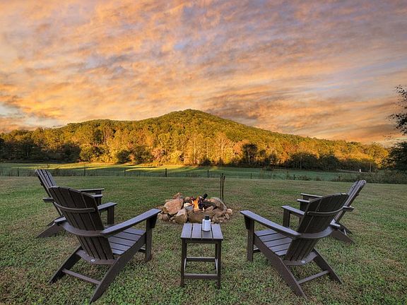 Nestled at the base of a stunning mountain backdrop, this storybook 2-bedroom, 2-bath retreat is the perfect blend of cozy charm and thoughtful craftsmanship. Set on a beautifully landscaped property filled with mature trees and lush greenery, every inch of this home feels like a peaceful escape. Step inside to discover a light-filled interior where natural sunlight pours through generous windows, creating a warm and inviting glow throughout. The open living area features custom wood cabinetry and gorgeous matte soapstone countertops — a timeless combination that elevates both style and function. A dedicated pantry and spacious laundry room make daily living effortlessly convenient. The primary suite is a true haven, complete with a walk-in tiled shower, double vanity, and serene views of the surrounding landscape. Every detail feels intentional, from the flow of the layout to the comforting finishes that make this home so special. Outside, unwind on the covered back patio — perfect for a TV, grill, outdoor seating, and a hammock for lazy afternoons. Or gather around the fire pit just as the sun dips behind the mountain, painting the sky in vibrant hues of orange and pink. Additional features include a two-car garage and an unfinished bonus room above the garage, ready to become your future office, guest suite, or creative studio. Whether you're sipping coffee on the patio or watching the sunset by the fire, this home captures the essence of mountain living — peaceful, cozy, and effortlessly beautiful.