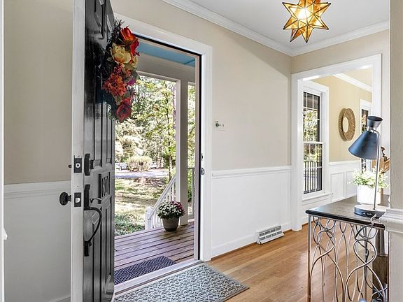Welcome to this beautiful 5 bedroom, 2.5 bath home, nestled in the sought after neighborhood of Woodlake, a vibrant community known for it's great schools, scenic walking trails, and access to the Swift Creek Reservoir. Set on nearly half an acre, this home offers both comfort and charm, with gleaming hardwood floors throughout , a warm wood-burning fireplace, and a light-filled sunroom that opens to an expansive deck and gazebo - perfect for entertaining or relaxing . The spacious kitchen and dining areas flow beautifully for everyday living, while the front porch provides a quiet place to unwind. Both the living room/office and the family room have built-in shelving and cabinetry. Upstairs you will find 5 bedrooms, including a large primary suite with an en-suite bath and walk-in closet. There is also a large finished room over the garage, which can be a 5th bedroom, a fantastic playroom, or upstairs den area. This home has a large walk-up attic with lots of storage space, and a side-entry two-car garage. Seasonal water views can be seen in the winter months, and it's just a quick walk to the water and walking trails ! In addition to being convenient to lots of shopping, dining and 288, Woodlake residents have access to many wonderful amenities, such as lake/kayak access, walking trails (13 miles), new swimming pools, tennis, pickleball, playgrounds, and a clubhouse. This home is ready to welcome it's new owners !