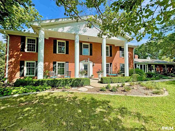 Inspired living & entertaining are yours in this southern colonial charmer sited on a beautiful & lush 5 ac. parcel located within mins of downtown Peoria business & all major medical centers! Enter the elegant foyer w/gracious open staircase flanked by formal liv & din rms & move through to the beautiful, updated kit w/professional appliance package, FP, & views of the grounds! A spacious fireplaced fam rm w/wet bar will be the hub of entertaining & the main flr office w/built ins! Upstairs you will find 4BRs to include a his/her master suite with 2 private BAs & additional full bath. The bsmt has a large rec room & tons of great storage! Outside is an oasis w/24X40 enclosed pool w/auto cover, pool house, bar, pergola, & outdoor shower! The hobbyist will love the heated 30X30 outbuilding w/a greenhouse & garage addition to house equipment. A small pond also adds additional interest to this amazing property. Totally updated home with newer windows, roof, HVAC, & invisible dog fence.