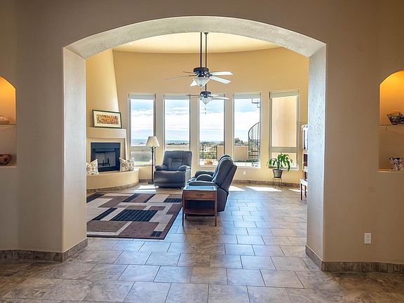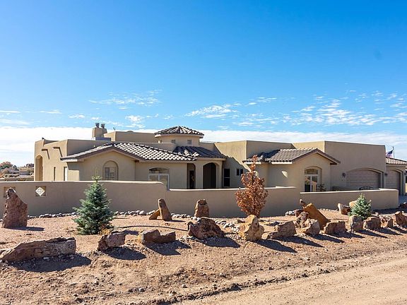 SPECTACULAR, unobstructed sweeping VIEWS of the Sandia Mountains & city lights!! Fall in love with this BEAUTIFUL custom single level home perfectly cited on a 1 acre view lot. Boasting a bright & open floor plan, arched doorways, tile floors gracing the entire home, separated master suite & a true IN-LAW QUARTERS with living room, kitchenette, bedroom, bathroom & separate outside entrance! Fabulous great room showcases wall of windows framing the Sandias, raised ceiling, kiva fireplace! Deluxe kitchen offers granite, custom cabinets, & island! Master suite is delightful with fireplace, atrium door to patio & luxurious master bathroom with jetted tub & walk-in tiled shower! Charming front courtyard & gorgeous backyard with sprawling portal, view deck & storage building! Refrigerated air!