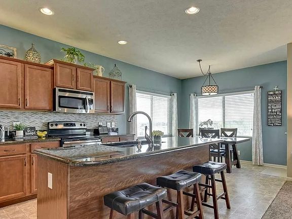 Beautiful walk-out Ranch with no neighbors in back! Well maintained, open floor plan with 4 nice sized bedrooms. Kitchen has center island, granite counters, tile backsplash, and pantry. Primary suite with walk-in closet and bath with double sinks. Spacious lower level has huge rec room, 4th bedroom and 3rd bath. Abundant storage. Flat, fully fenced backyard with fantastic sunset views. Must have minimum credit score of 600 with no accounts in collection or default. Excellent rental history. Zillow applications are for screening purposes only, please reach out directly for an application. 1 year lease minimum. Up to 2 small(under 25lbs) mature(1yo+) pets welcome with $450 pet deposit and $30 monthly pet fee. **Showing times are limited to Monday(4/14) Wednesday(4/16) and Saturday(19th). Appointments must be made through Zillow** Tenant is responsible for all lawn care, snow removal and utilities.