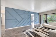 En-suite bathroomOpen floor planCustom modern accent wallGorgeous garden viewsSpacious primary suiteContemporary designNeutral laminate flooring