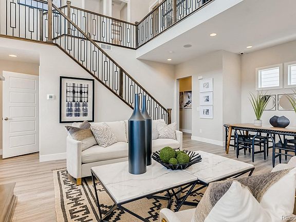 Welcome to the awesome Columbia model that boasts high ceilings in all of the right places. Upon entrance, find your main level study that overlooks the extended front porch. The kitchen has a large island with breakfast bar, stainless appliances including a 36" gas stove top, hood vent, built-in microwave/oven combo, and built-in dishwasher, hard surface counter tops throughout, hard surface floors, and so much more! Modern fireplace w/ mantel & blower and a side patio off the kitchen to access your fenced in side yard. 10' ceilings on main level, 9' ceilings on upper & basement level. In your finished full basement you will find an additional rec. room, bedroom, full bathroom for more private living space, and abundant storage. The upper level boasts a loft, two secondary bedrooms w/ walk-in closets, hallway full bathroom, upper level laundry room with built-in cabinets and sink, and an owner's suite w/ tray ceiling and a luxurious 5-piece bathroom bathroom that has a free standing tub, enlarged shower, tile shower pan,and frameless shower glass enclosure. All of this is down the street from award winning rec. centers, abundant trails/parks, and in the center of it all along major routes. Estimated time of completion to be approximately December 2021. *This home is under construction and the photos shown are representative photos only of our model home and are meant to show floorplan and layout only. Interior and exterior are subject to change upon completion. All decor and furniture pieces are not included in the purchase of the home. Please speak with a Community Sales Manager for more details. Builder incentives are tied to the use of builder's lender