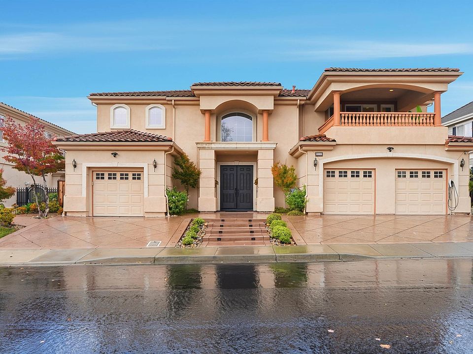 Welcome to this Toll Brothers Atherton executive home, ideally located in East Dublin’s prestigious gated community of Pinnacle Ridge. This elegant 5 bedroom plus office, 5.5 baths, east-facing residence greets you with a grand two-story entry, highlighted by a dramatic dual staircase, soaring ceilings, and refined crown molding. The main level features a spacious den/office, a bedroom with its own en-suite bath, and an additional guest bathroom—perfect for guests or multi-generational living. The chef’s kitchen impresses with a large center island, granite countertops, custom cabinetry, and high-end appliances, providing the ideal setting for cooking, gathering, and entertaining. Retreat to the luxurious primary suite, complete with dual vanities, a jetted soaking tub, a walk-in shower with dual shower heads, and two generous walk-in closets. The upstairs also offers spacious secondary bedrooms, providing comfort and privacy for the whole family. Step outside to a professionally landscaped backyard, where lush garden beds and mature trees surround an expansive patio—perfect for outdoor dining, play, and relaxation. Additional highlights include a three-car garage and an unbeatable location close to shopping, dining, top-rated schools, freeway access, and BART.