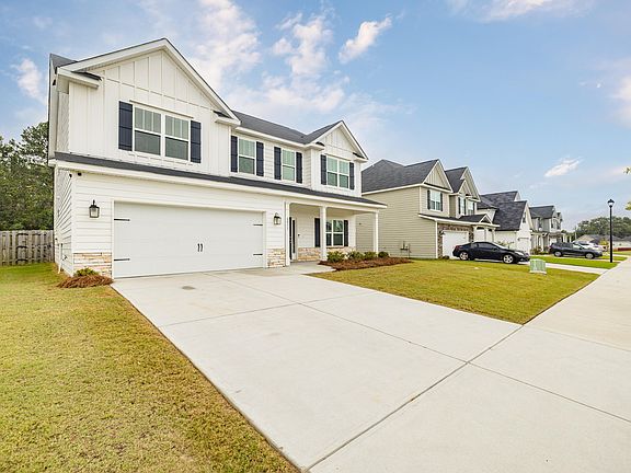 Welcome to this gorgeous and quality built 5 bedroom 3 bath home only three years old! This is the Greensboro plan built by Oconee Capital Builders. Rocking chair front porch overlooks large park across the street. Open floor plan with tons of upgrades! Dramatic two story entry! Formal dining room with coffered ceiling. Kitchen, breakfast room, and great room all open. Great room has coffered ceiling and fireplace. (Home has 2 fireplaces) Kitchen has huge granite island, stainless appliances (including refrigerator) and backsplash. Entire home has beautiful, hard surface flooring throughout (no carpet!), recessed lighting, heavy moldings, bullet nose (rounded) sheetrock corners throughout, high ceilings and lots of windows for natural light with 2 inch faux wood blinds. One bedroom and full bath down. Wood steps with iron spindles lead to second level with 4 more bedrooms, including master, and 3 full baths. 5th bedroom could also be a large media room and has barn doors. Upstairs laundry room. Beautiful granite and tile floors in all four full bathrooms. Master bedroom upstairs has sitting area. Master bath has separate tub and shower with glass door, huge walk-in master closet. Lots of storage throughout! Pretty back covered porch with stone surround wood burning fireplace. This home is total electric. It was built under a 10 year structural warranty with approx 7 years remaining. Large privacy fenced backyard! Time control sprinkler system in garage. HVAC was just serviced and paid invoices for Recent pressure washing, touch up painting, cleaning and Floor Plan are all under documents and available upon request. This beautiful subdivision has sidewalks, street lights and a large park. Located conveniently to Fort Eisenhower, medical, shopping, restaurants, schools, and interstate!