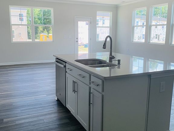 Brand new MOVE-IN READY 2 level townhome in Triple Crown subdivision for immediate move-in. This is a 3 bed, 2.5 bath, 1 car garage townhome with spacious family room. Kitchen has white cabinets, gas stove with exhaust vented out. Kitchen is also equipped with stainless steel refrigerator, dishwasher and garbage disposal. Entire 1st floor has Luxury Vinyl Planks which offer low maintenance. The screened porch could allow you to enjoy the outside weather while keeping the insects and bug outdoor. 2nd floor has a beautiful master bedroom with huge walk-in closet and attached gorgeous bathroom which has tile floor, tile shower wall, double vanity. 2 additional bedrooms, laundry room with appliances, secondary bathroom, carpet flooring in 2nd floor and stairs. High speed interest is included in the rent. Video door bell, security sensors, smart thermostat are a few features that come with this property. Close to HWY 98, RTP, RDU airport. Community amenities include pool and playground. $200 admin fee, when approved. Pets negotiable; $400 pet fee