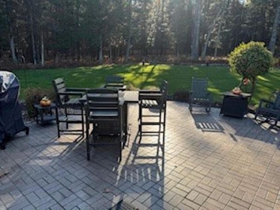 Fire pitGourmet kitchenAsphalt drivewayOpen concept