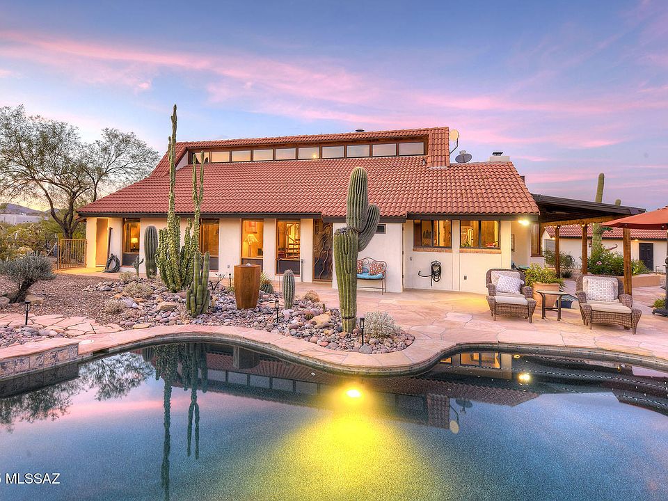Discover an extraordinary desert estate nestled on over three acres of pristine high-desert terrain. This remarkable property offers ultimate privacy, breathtaking mountain vistas, and convenient access to downtown amenities--a rare combination that creates the perfect retreat for intentional living.The home's bold architecture harmonizes beautifully with the surrounding landscape, featuring soaring high ceilings, rich wooden accents, and dramatic sloped ceilings that frame stunning mountain views at every turn. Expansive windows blur the boundaries between indoor and outdoor spaces, ensuring the majestic desert scenery becomes an integral part of your daily experience. The stunning kitchen is the star of the home, with high-end finishes and premium appliances that make both everyday meals and grand entertaining a pleasure. Outside, a sparkling pool surrounded by native desert landscaping creates a serene oasis, while the lush garden and greenhouse allow you to cultivate your own fresh herbs, vegetables, and flowers. A separate studio building provides dedicated space for yoga, meditation, or artistic pursuits your private sanctuary for creative expression and mindful practice. The primary bedroom opens to a viewing deck, offering an intimate space to take in the sweeping desert vistas and endless sky. With over three acres at your disposal, you'll enjoy unmatched privacy and peaceno neighbors, no traffic noise, just desert breezes and the gentle sounds of native birds. Yet despite this profound seclusion, downtown restaurants, galleries, and shopping remain just minutes away. This is more than a home. It's a carefully curated lifestyle destination where dramatic natural beauty meets sophisticated comfort, and where every day offers an opportunity to breathe deeply, move freely, and live authentically.