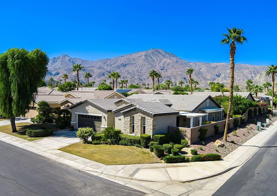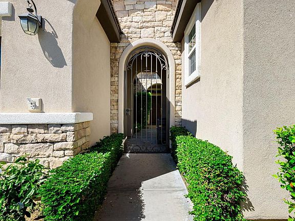 Perched on an 8,276sqft. premium corner lot, this beautifully appointed Monterey plan with detached Casita offers the perfect blend of comfort, style, and resort living in the heart of Trilogy at La Quinta. Featuring 3 bedrooms, 3 bathrooms, and a versatile den/office with its own private entry, this 1939 sq. ft. single family residence is designed to maximize both indoor and outdoor living. The Tuscan-inspired exterior, enhanced with stone accents and a custom wrought iron gate, opens into a serene private courtyard (with pergola) that seamlessly extends your living and entertaining space. Inside, soaring ceilings, gorgeous 20'' Italian tile flooring, and expansive picture windows create a bright and inviting ambiance. The chef's kitchen is equipped with upgraded cabinetry, a walk-in pantry, extensive granite counters and backsplash, stainless steel appliances including double ovens, gas cooktop, counter depth fridge, and a generous center island, with bar seating, making it ideal for cooking and entertaining alike. The open concept great room showcases a cozy tile encased gas fireplace and TV/Media niche. The spacious primary suite boasts plantation shutters and slider to rear yard, and guest accommodations, including the separate Casita, ensure comfort and privacy for family and visitors. Outdoors, the lush backyard features a paver deck, mature lemon and lime trees, providing a private oasis. Additional upgrades include a fully replaced A/C and HVAC system (2022) and 26-foot-deep garage. Great proximity to the Santa Rosa Clubhouse with its world-class amenities, this home offers the quintessential desert resort lifestyle. Schedule your private tour today!