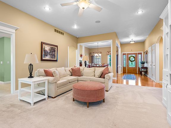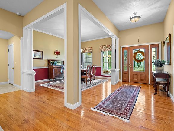Beautiful Ranch home on over a 1/2 acre private lot backing up to the Olde Mill Golf Club. Enjoy main floor living with this stunning 4 bedroom 3.5 bathroom quality built home. Vaulted ceilings, arched windows, architectural pillars and crown molding. The cooks kitchen offers all NEW SS appliances, center island, pantry and wine rack. You will spend your mornings and evenings in the custom sunroom being refreshed in nature all around you! The light and bright primary is complete with ensuite bath with soaker tub, double vanity and amazing closet space. Two additional bedrooms and 2nd full bath create lovely space for all. The front entry is elegant, bringing you into the Formal DR room and LR with gas fireplace flanked by windows flooding the area with light. The amazing custom built bookcases add elegance to this fabulous gathering area. The back door offers a mudroom space along with a main floor laundry and 1/2 bath. The LL is fabulously complete with a large bedroom with an amazing designer walk in closet. The huge craft room could be used equally well as a second kitchen or home office. The 3rd full bath with no step shower and full vanity create a space that would serve well as a mother in law suite. The front porch is a welcoming place to rock and relax. Underground sprinkling and lovely landscaping create beautiful curb appeal. The NEW composite deck off of the sunroom offers yet another area to recoup and refresh. Three car garage. This property truly has it all!