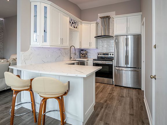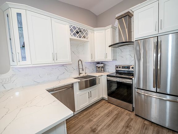 - Features: Kitchen (Eating Area-Breakfast Bar, Custom Cabinetry, SolidSurfaceCounter, Updated Kitchen), Flooring (Vinyl)