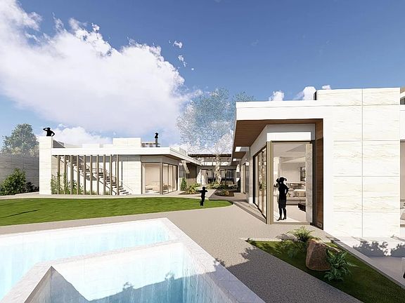 *** Currently Nearing Final Stages of Construction*** Discover a rare opportunity to own a brand-new, architecturally striking single-level gated estate in the Muirlands of La Jolla. Designed for effortless indoor-outdoor living, this expansive U-shaped residence spans over 8,003 sq ft and wraps around a stunning outdoor courtyard with a gorgeous, manicured olive tree and firepit conversation area that flows into a spacious yard with a resort-style pool, spa, and built-in BBQ area. The estate is perched on a private, .63-acre gated lot, capturing views of the ocean, bay, and downtown San Diego. Inside, soaring 14-foot ceilings and an open floor plan create a sense of volume and elegance throughout the space. The main house features 5 bedrooms, 5.5 baths and 6800 sqft with a great room, media/family room, and an incredible primary suite with his and hers oversized closets. A separate 1200 sqft ADU/Guest House offers flexibility for guests or multi-generational living, and a 3-car garage completes this extraordinary property. Home will be wrapped in travertine stone, neutral finishes with white-oak flooring, Porcelenosa tile, and soft pallets throughout. Hollywood hedges offer to total privacy and seclusion. Enjoy entertaining on your expansive roof top deck with a full outdoor kitchen and views of downtown San Diego and the Pacific coastline. You have never seen a single level estate living like this! Now is the time to solidify your brand-new luxury home purchase. Please call agents directly for a private tour or further information.