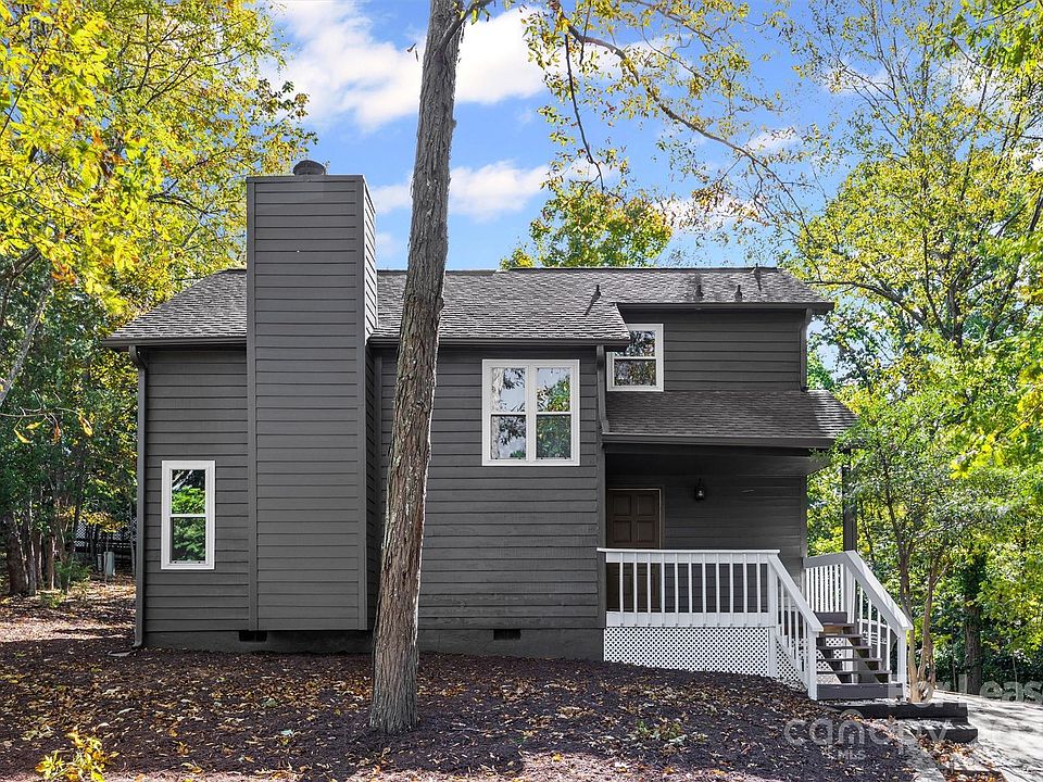 Beautifully updated and freshly painted 3-bed, 1.5 bath in Tega Cay! The kitchen features new Quartz countertops and cabinets, a farm sink, and SS appliances. The great room boasts a vaulted ceiling and a wood-burning fireplace and opens to the dining area, kitchen, and a large sunroom. The sunroom has lots of windows for plenty of natural light and opens to two large decks, which would be great for entertaining or simply relaxing after a busy day. There is a nice-sized bedroom on the main level and a half bath. The primary bedroom is on the upper level, along with another secondary bedroom. They share a full bath with double vanity sinks and a shower/bath combo. The laundry closet is also on this level. Pets Conditional. **No Cats**