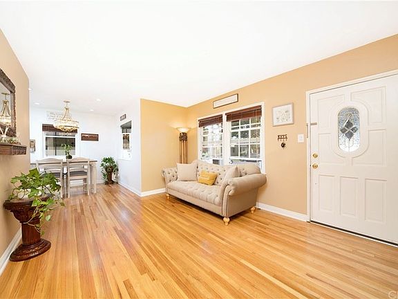 Welcome home to this stunning turnkey home. As you enter you will notice the gorgeous hardwood floors that are throughout most of the downstairs, the living room opens to the dining room where you will see the breakfast bar/island that separates the kitchen from the dining room. The kitchen was remodeled & upgraded in 2021 to include soft close cabinets & drawers; Cabinet/Pantry with pull out drawers; Thermador 6 burner stove; Kucht stainless commercial grade 4 speed rangehood; Oversized GE energy star French door refrigerator with water & ice maker; Costa Esmeralda Italian granite countertops & under cabinet lighting. Downstairs bathroom has tiled oversized walk-in shower. Hallway downstairs includes 2 closets for your storage a & linens. Very versatile home could be a 3 or 4 bedroom depending on your needs. Three bedrooms downstairs have double mirrored closet doors & ceiling fans, the rear bedroom is being used as an office, has a second closet for additional storage & leads to the family room. The family room has tile & Pergo commercial grade floors, 2 ceiling fans, under stairs storage & French doors with built in blinds leading to the covered patio & backyard. In the family room you will see the stairs leading to the private & spacious primary bedroom with ceiling fan, & the same commercial grade Pergo floor; The private bathroom has double sinks, granite countertop, shower/tub combo with a deep long tub & walk in closet with window & pull-down ladder to attic storage. The backyard is an entertainer's delight with covered patio, built in BBQ & bar with working sink (cold water), hot tub & tropical greenery. Long driveway with privacy gate leads to detached extended garage that includes a workshop with hot & cold-water sink; there are many possibilities, workshop, office, ADU under the new standards (check with the city) Laundry facilities are located in the garage with new garage door & opener as of 2021. The washer & dryer are staying with the property. Other features include dual pane windows, A/C, central heat, recessed lights, upgraded electric & plumbing, whole house fan, extended front porch, vinyl fence around front yard, new gas line to garage under concrete installed within the last year, deep storage shed behind garage. Numerous upgrades have been done within the last year which are listed in the supplemental section. Home is convenient to shopping, restaurants, parks, schools & freeways. This home has it all! Don't miss this opportunity!