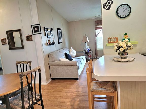 Forest Lake Estates is a 55+ age qualified active and vibrant community with tons of amenities such as pickleball, tennis, brand new fully equipped gym, 2 pools, fishing lake, shuffleboard and so much more. This 2 bedroom 2 bathroom home has an abundance of storage outside. There is a beautiful four season's room to comfortable sit and enjoy Florida living. This 2 bedroom, 2 bathroom home feature a spacious primary bedroom with a walk-in closet and ensuite. The guest bedroom is only steps away from the guest bathroom for convenience for your guests, and the guest bathroom has been updated with modern touches. This home is cozy and has an abundance of light coming through. The kitchen offers a newer oven and built peninsula for extra counter space and seating. The home is fully furnished and move-in ready. Call for your private tour.
