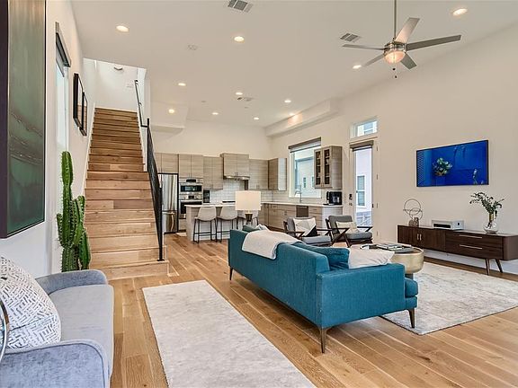 Welcome to this stylish contemporary home perfectly situated just east of Austin in the sought-after Agave Community. The meticulously designed residence promises a harmonious blend of form & function.Boasting 3 bedrooms & 3 full baths, this home offers the ultimate in comfort & convenience. As you step inside, you'll be greeted by a space that exudes modern elegance, with its open floor plan & light filled rooms.A standout feature is the thoughtfully integrated Murphy bed & desk in the main level bedroom. A space-saving solution that's both practical & chic; be assured your guests will feel right at home. The kitchen is a culinary enthusiast's dream, with its bright & open layout, complemented by high-end, built-in stainless steel appliances. The generously sized island offers a breakfast bar& additional workspace. Whether you're entertaining or enjoying a quiet meal, this kitchen is sure to delight.Custom roller window shades provide privacy & style. Plus, an electric shade on the sliding patio door enhances your comfort and convenience, adapting to your needs at the touch of a button.Beautiful wood floors add warmth and sophistication to the main areas of the home. Upstairs, the living area doubles as a third bedroom, offering versatility for your lifestyle. This adaptable space is multi-purpose, whether it's a home office, media room, or an additional bedroom.Step outside onto the second-story patio; a perfect spot for sipping your morning coffee or unwinding at the end of the day. This property offers not one, but two yards, providing plenty of outdoor space for gardening or recreation. The oversized garage is an added bonus, providing ample space for your vehicles, storage, & more. Solar panels adorn the roof, harnessing the power of the Texas sun to reduce your environmental footprint & your energy bills.With an easy commute to downtown Austin, you'll enjoy all the city has to offer while having a peaceful retreat to return to.