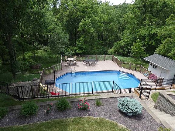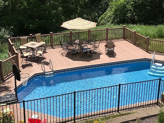 Peaceful location for this spacious 4 BR, 3.5 bath situated on gorgeous wooded lot! Generous room sizes throughout with over 2,800 finished sqft, formal living & dining rooms, convenient main floor laundry, lovely eat-in kitchen open to fireplaced family room and finished walk-out lower level w/ rec room, family room, full bath and huge storage area. Large deck off FR overlooks beautifully landscaped, parklike backyard w/ mature trees, patio and fabulous pool- perfect place to relax or entertain family and friends! Move in just in time for summer!
