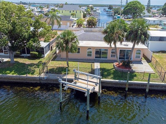 Welcome to waterfront living in Sea Ranch on the Gulf! This 3-bedroom, 3-bathroom canal-front home offers direct Gulf access on one of the community’s wider canals — ideal for boating and enjoying open-water views. Inside, you’ll find a bright and functional split floor plan with multiple living areas for relaxing or entertaining. Following Hurricane Helene, the Seller completed repairs in 2025, including a remodeled kitchen with contemporary finishes, stainless steel appliances, quartz counters, and updated bathroom vanities. Per Seller, Pasco County Building division inspected property - information can be verified on Pasco County's Building website (RESALT). An additional full bath creates a rare second bedroom suite. Tile flooring throughout, upgraded 4 windows (2020) and 2 sliders (date unknown), and roof (2019) add value. Step outside to your private waterfront retreat: a stationary dock (2008) with a 10,000-lb boat lift (2018), seawall, and fenced yard for outdoor enjoyment. The wide canal provides excellent boat maneuverability, while partial Gulf views add to the coastal charm. A one-car garage, circular driveway, and optional membership in the nearby Sea Ranch Civic Association complete the package. This home combines comfort, convenience, and the best of Florida’s waterfront lifestyle at an attractive value.