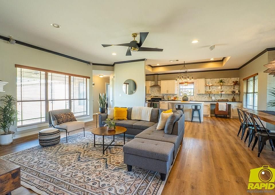 This stunning 4-bedroom, 2-bath home in the highly sought-after Bluffs community is move-in ready and waiting for its new owner. With an open-concept layout, its perfect for entertaining guests or keeping an eye on little ones while preparing meals in the upgraded kitchen. The chef of the family will love the marble backsplash, granite and quartz countertops, designer lighting, gas stove, vent hood, and RO water system. Split bedrooms offer privacy, while the Jack-and-Jill bathroom adds convenience for family and guests alike. Situated on an oversized lot, this home provides extra parking and a tucked-away yard ideal for pets or play. Stylish, functional, and full of thoughtful upgrades?this is one you don?t want to miss. Call today to schedule your private showing!